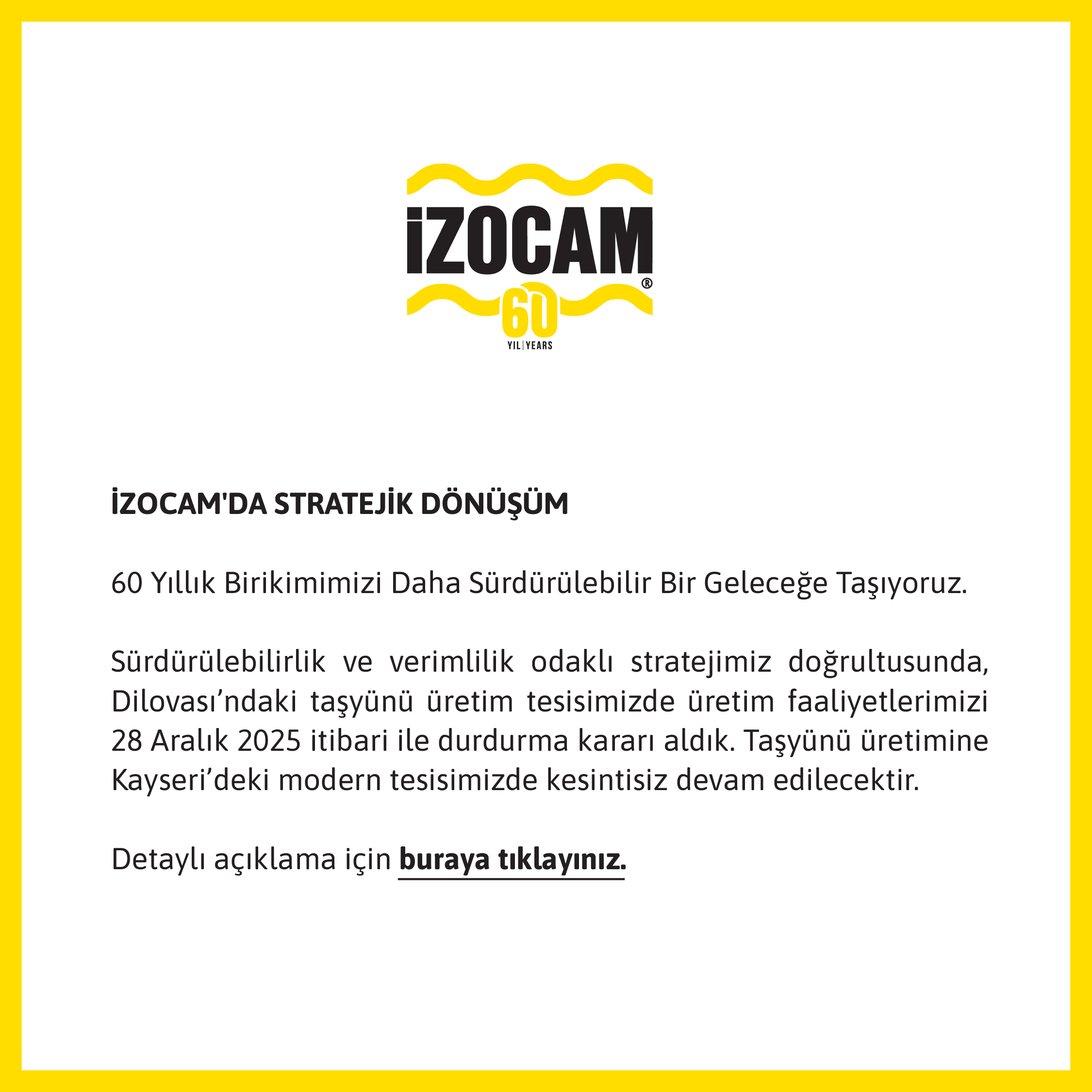 Türkiye'nin öncü yalıtım üreticisi olarak, stratejik büyüme hedeflerimiz doğrultusunda önemli bir adım attık ve Kayseri İncesu Organize Sanayi Bölgesi'nde Terrawool markasıyla taşyünü üretimi gerçekleştiren His Yalıtım’ı satın aldık.